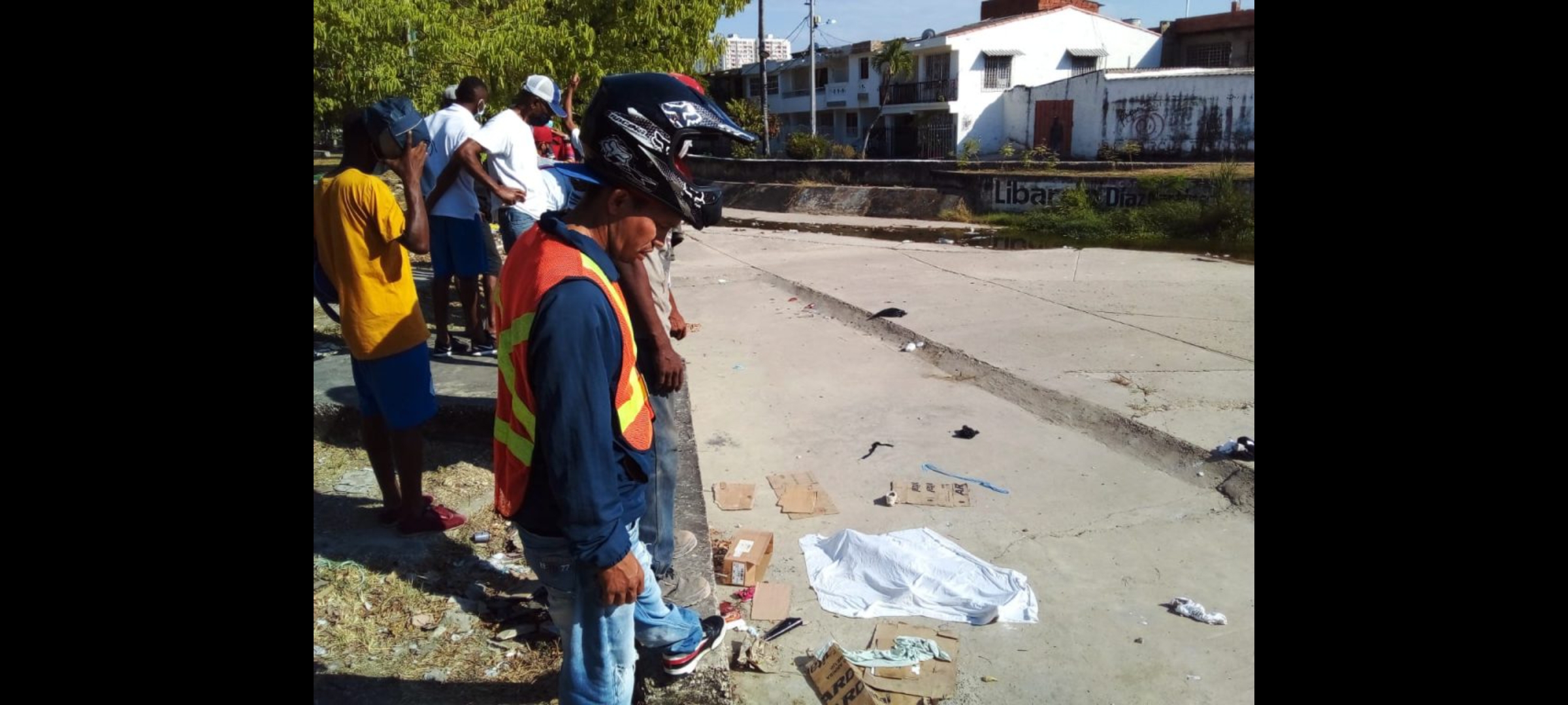 El cuerpo yace al interior del caño ricaurte, a la altura del barrio San Pedro, con una sabana encima y varios cartones a los lados.