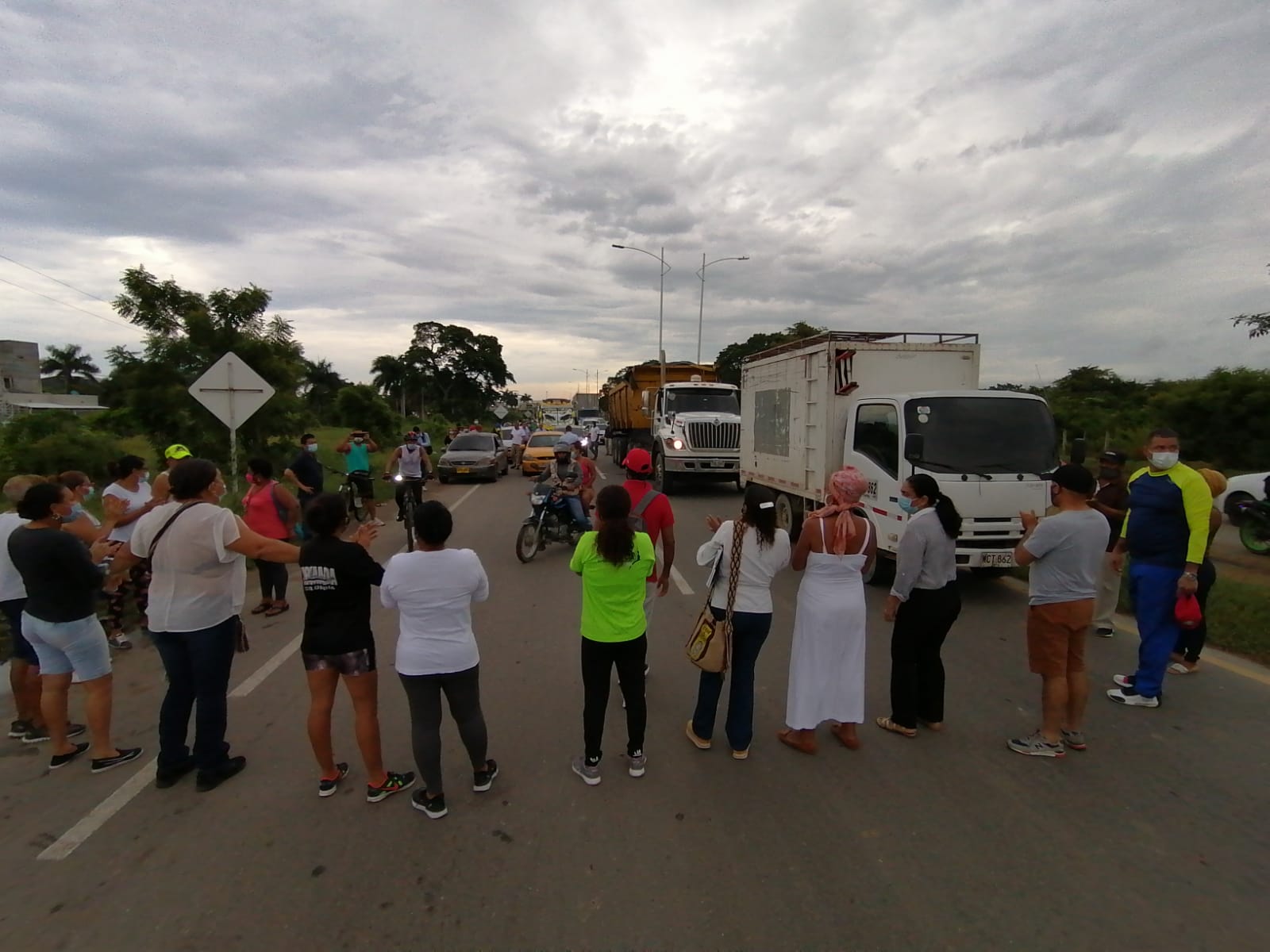 Los vecinos bloquearon la Circunvalar (vía a Turbaco) en sentido Pozón- Rodeo desde las 6:30 de la mañana lo que ocasionó grandes embotellamientos.